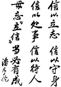 “中国现代会计之父”潘序伦先生广州立信学校是经广东省教育行政主管部门批准成立具有独立招生资格的综合性中等专业学校(学校代码:00328)。学校历史悠久,由我国杰出会计专家、教育家潘序伦博士于1927年在上海创办立信会计高等专业学校,2003年改为上海立信会计学院。随后国内各大城市及香港也建立立信会计专科学校。全国立信大、中专学校已有25所。广州于1946年创办立信会计学校至今已六十年,先后培养了大批合格人才分布国内外,很多已获会计师、高级会计师、经济师职称。1995年起办成了以商务为特色的多门类的中专学校。潘序伦博士在上海创办立信会计高专,2003年已升格为学学院。它是全国25所立信学校的领头人。每年召开全国立信学校协作会议商讨发展大计,交流教学经验。“立信大、中专学校、会计师事务所、会计图书用品出版社”三结合的模式很有创意。1983年有关部门提出全国立信学校形成总分校体制,因涉及国家教育管理体制,未能实现。之后,财政部要求,由上海立信会计学院牵头,建立协作会议制度。并于1984年拨款开始活动。1985年在上海召开了第一次会议至今已举行了12次。[1]
