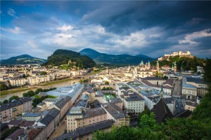 萨尔茨堡风光(32)萨尔茨堡(Salzburg)位于奥地利中部的萨尔茨堡州和德国巴伐利亚州的交界处,在德国慕尼黑以东150千米,在奥地利维也纳以西300千米。地处阿尔卑斯山北麓,南面是高山连绵,北面却是一马平川,最近的高峰是翁特峰(Untersberg),海拔1973米,距离市中心仅5千米。萨尔茨堡是一座山城,市内有多座原始的山丘,包括要塞山(Festungsberg,542米)、蒙西斯山(Mönchsberg,540米)、莱恩山(Rainberg,511米)和卡布金纳山(Kapuzinerberg,640米),是欧洲绿化覆盖率最高的中心城区。萨尔茨堡要塞坐落在要塞山上,是萨尔茨堡城市的标志,要塞长250米,最宽处150米,是中欧现存最大的一座要塞。总长225千米的萨尔茨河流经萨尔茨堡,它是地跨奥地利和德国的因河的最长和水量最大的一条支流。