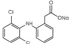 本品主要成份为双氯芬酸钠。 其化学名称为:2-[(2,6-二氯苯基)氨基]-苯乙酸钠。 化学结构式为: 分子式:C 14H 10Cl 2NNaO 2 分子量:318.13