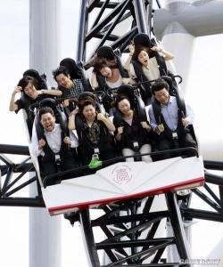 日本高飞车(6)“高飞车”建造成本高达30亿日元(约合3700万美元),全程轨道长度超过1000米,有七个反转,最快时速可达100公里,特别是会在垂直上升到43米高的塔上之后以121度的角度急剧坠落,期间的加速度达到4G之高,接近战斗机飞行员的体验,另外途中有一个翻滚会在黑暗中进行。