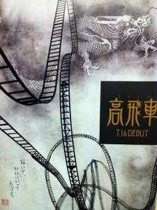 高飞车自身的毛笔Logo,就采用了将棋里的字体,站台里则布满了棋盘格的纹理,配以和风水墨画的站台装饰,使古老艺术和现代科技完美融合。飞车,为日本将棋中的一颗棋子,为突出该风格,过山车的车体特地采用了一反常态的短车,而非一般过山车的长车。过山车轨道的整个走向喻指棋子“飞车”从被放置到棋盘上到升级为“龙王”的历程。过山车起步时的不平整轨道,以一个棋子的视角来看,极像棋局一开始棋子被从桌上拿上来,放到棋盘上的动作。 过山车从黑洞里被弹射出来,象征着棋子被放上棋盘;不停的翻滚,模拟了棋子被棋师拿起、翻转、放下的动作;而43米的提升和打破了吉尼斯世界纪录的121度反转下坠。暗喻着“飞车”升级为“龙王”的飞跃性过程(在将棋中,“龙王”印在“飞车”棋子的反面)。乘坐高飞车,游客可充分体验到历经千辛万苦最后成功升级的成就感。