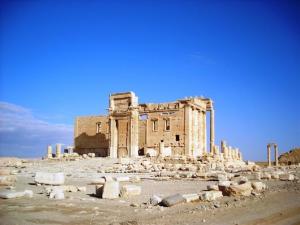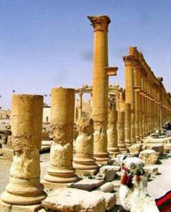 在此处众多的古迹中, 贝尔神庙是最为雄伟的罗马式建筑,仅西廊两侧原先就建有390根巨大的米黄色 石柱,如今只剩下7根。从远古时代的自然神崇拜,到 古罗马帝国的基督教教堂,贝尔神庙因不同时期的文明而发生着变化,不同时期、不同文明的遗迹都被完好无损地保存下来了。帕尔米拉古城遗址是叙利亚境内“丝绸之路”上的著名古城,又名塔德 莫尔,位于叙利亚中部,地中海东岸和幼发拉底河之间的沙漠边缘的一个 绿洲上。早在史前时期,即有人类在此穴居,至今尚留有痕迹。公元前1世纪这里是联系 波斯湾和东西方各国 的 贸易中心,繁荣持续了300年之久。2世纪60年代归罗马帝国统治。3世纪为一广大王国的首邑,273年遭战争破坏而衰落。现残存柱廊、 凯旋门、王宫、雕像和贝勒神庙等 古代建筑遗迹。古城南部耸立着雄伟的贝勒神庙,神庙建于公元32年,神庙的 3 座殿堂呈 U 型分布,围成一座广场。 神庙正面有扶墙柱,长方形窗户上方有三角形装饰,15米高的圆柱环绕在神殿四周。在城中曲道回廊处,有一个古罗马 角斗场,边上有宫殿残墙,当年的高甍画栋,已不复存在。一条青石道路,通向 古殿深处,这就是著名的帕尔米拉大街。它建于公元 2 世纪 哈德良皇帝统治时期,全长1600米,皆为石方铺面。与石道并行的是横贯城空的天廊水道。这种天廊水道,建筑奇丽,气势宏大。一根根间隔10米的浮雕石柱,横托起沉重的青石水槽,槽下柱顶处嵌着华灯油座,石槽横悬在10米高空,相连成一条巨龙,偃卧在蓝天白云里。长长的廊柱,高大的门和门廊式街道为帕尔米拉城增色不少。