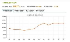 [1]据搜房网三箭如意苑小区网监测2012年10月到2013年3月的走势如右图,三箭如意苑现价为11817元/每平米。
