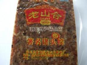澄海老山合腊味自1890年黄允坤创制以来,距今已有百余年历史。老山合腊味创制伊始,以其选料上乘、调味考究、制作精湛、质量稳定而饮誉市场,深受广大顾客欢迎。其中尤以猪头粽这一产品更是驰名海内外。现老山合腊味厂在经济改革大潮中,凭借自身优势,在原来传统工艺基础上,结合现代技术而生产。随着业务的发展和销售范围的扩大,不断创新。老山合猪头棕因其制法精巧、奇香独特、耐人寻味而著称于世,是澄城城北黄氏垂裕堂第10世黄钦山所创制,肇店于澄城树仔脚火烧桥头,注册商标为“老山合”牌,饮誉8代共200余载。