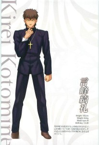 | 身高:185cm体重:82kg血型:B型生日:12月28日 | 远坂时臣的弟子 ,曾经是教会的“代行者”。原先以切嗣为目标参加这次圣杯之战,最后找到了愉悦的意义。原先是Assassin的Master,之后成为了Archer的Master。 | ![]() |