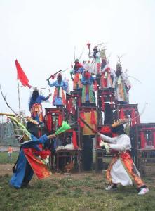 而该村主要地戏(跳神)为《精忠传》,主要讲述(汉)民族英雄岳飞大元帅.