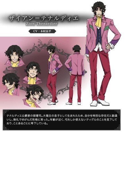 锡安·泰纳尔迪耶(ザイアン=テナルディエ,Zion Thenardier)声优:木村良平泰纳尔迪耶公爵的独生子兼继承人。虽然具备优异的武艺但品性方面却有缺陷,对地位比自己低的人妄自尊大而且极其无礼,但在应对突发状况方面却疲软无力。和父亲泰纳帝迪耶公爵一样蔑视泰格勒这一存在。在入侵阿尔萨斯后与泰格勒和艾伦率领的吉斯塔特军交战,并最终战死于莫尔塞姆平原。(已死) |