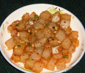 5、取食:拌以酱油、醋、蒜泥、味精、油辣子等不同佐料,即成各式清凉、爽滑的凉粉。若拌以豆豉酱,则可制成四川凉粉之正宗——川北凉粉。