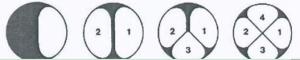 图6 亭尖面多面抛磨顺序图一2、研磨抛光16个亭主面和16个下腰小面;调整分度和角度,采用交叉抛磨工和多面抛磨工,按照抛磨亭尖面的方法和步骤依次抛磨亭主面和下腰小面。