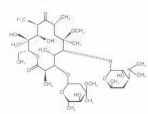 本品主要成份为:克拉霉素。 其化学名称为:6-0-甲基红霉素。 化学结构式: 分子式:C 38H 69NO 13 分子量:747.96