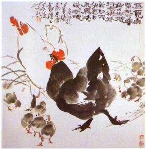 对于自甘淡泊、潜心钻研学问的萧焕来说,他的个人画展以其浓郁的生活气息和鲜明的艺术个性,赢得了长安画坛众多的艺术家和观众的交口称赞,实在可喜可贺。提起萧焕,从五十年代在西安美院同学说起,到我们同时被选派到北京;上海中国画院进修,后来又回国画系任教,不少生活往事历历在目。清晨,他常常在我住房右测的小园中挥舞红缨枪、青龙剑,晚上又常常传来他和爱人李雅悦以胡琴拌奏的秦腔、眉户声。从那时到现 在,在我的印象里,萧焕一直是一位朝气蓬勃、一身正气、甘于奉献、勤奋好学的好同道好朋友。萧焕从美院附中到大学又到北京画院从师王雪涛的过程,实际上是接受了东西方两种教学体系的教育与训练。他不仅有着深厚的绘画功力,而且在纵向继承传统与横向借鉴西方上,博采众长,吸收了许多丰富的艺术营养。他在努力钻研传统的同时,广泛借鉴姊妹艺术的长处,把艺术实践的着眼点主要放在对生活的深入观察和深刻理解上,从中逐步探索出自己独特的表现手法,譬如,从他作品中常见的牡丹为例,他不仅在西安经常观察研究牡丹的表现手法,而且多次到山东荷泽、河南洛阳的牡丹园中去实地写生,他非常注意阴晴雨露,晨曦晚霞中不同牡丹的不同势态,甚至不顾狂风暴雨,头顶雨披观察牡丹的花蕾枝叶的变化,一画就是几个小时,有时真是到了废寝忘食的程度。数十年来画牡丹,画到生时是熟时。他画的各种写生稿成了框垒箧,美不胜收。他笔下的牡丹,或热烈浓艳、雍容华贵,或素雅凝香、磊磊大方,或迎风呈姿、傲然挺立,或身披晨露,丰姿楚楚,无不生动传神,富有个性。他的工笔《牡丹迎风图》以其新颖的构思,独特的表现技巧,荣获六届全国美展二等奖和国际牡丹大赛优秀奖。萧焕出生在终南山下,生活使他从人民群众中汲取了丰富的艺术营养,同时又在自己的作品中表现出人民群众喜闻乐见的审美情趣。他所画的雄鸡、孔雀、山鹰、黑猫等都以浓郁的生活气息和强烈的时代精神受到群众的热烈欢迎,其中不少作为年画被连年出版,挂在千家万户的厅堂和炕头上。萧焕的作品雅俗共赏,工写兼长,既有严谨朴实的一面,细蜜密精微而不纤弱,同时又有热