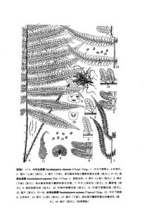 植株高达70厘米。根状茎短而斜升,黑色。叶簇生;叶柄长达40厘米,粗约2.5毫米,基部黑色,向上为栗棕色,有光泽,通体被相当密的灰白色的短针毛;叶片长约30厘米,基部宽约14厘米,狭长圆形,先端渐尖并羽裂,基部不变狭,二回羽状深裂;羽片15-17对,对生或向上的互生,开展,相距2-2.5厘米,无柄,下部几对羽片不缩短长7-8厘米,中部宽1.4厘米,披针形,多少呈镰状弯曲,渐尖头,基部略变狭,截形,羽状深裂达两侧的狭翅,翅宽约2毫米;裂片15-18对粗约6毫米,宽约2.8毫米,先端圆,全缘,彼此接近。叶脉可见,侧脉斜上,单一,每裂片6-7对,基部一对出自主脉基部。叶草质,干后褐色,羽片两面密被灰白色的短针毛,沿羽轴毛较长且密;叶轴棕色,下面也有灰白色的柔毛。孢子囊群圆形,背生于侧脉的中部以上,稍近叶边,每裂片通常1对;囊群盖较小,圆肾形,棕色,膜质,背面密被短柔毛。宿存。