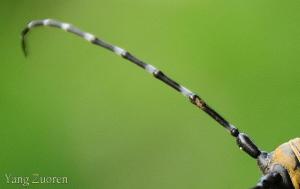 鞭节各小节近似三角形,向一侧呈齿状突出,形如锯条,如锯天牛、叩头虫、芫菁等;