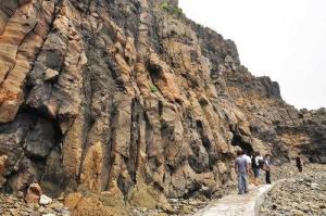 熔岩平台:由新生代火山岩岩浆凝固后形成的玄武岩,产状平缓,经海蚀作用形成熔岩平台。年代为2164万年前。其出露长300米,宽80米,玄武岩具气孔状、杏仁状构造。熔岩平台处潮间带。