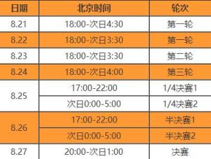 2017年世界羽毛球锦标赛于21日-27日在苏格兰格拉斯哥进行,以下是本届比赛各轮次时间表。