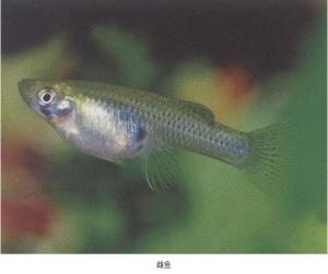 食蚊鱼(3)雌食大弯食蚊鱼每年可生产3~4次.每次可产下200多条小鱼。肚子里有小鱼的时候,雌大弯食蚊鱼的身体两侧会出现大块的黑色。小鱼一般产在靠海或者含盐分的水中。由于对水温不是很敏感,大弯食蚊鱼也适合于在家中饲养。大弯食蚊鱼栖息在泉水流淌的河流中,濒危动物。属于濒危动物的还有清溪食蚊鱼、美国的佩科斯河食蚊鱼、巴西的圣马科斯湾食蚊鱼。