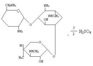 本品主要成分为硫酸依替米星。 化学名称:O-2-氨基-2,3,4,6-四脱氧-α-D-赤型-己吡喃糖基-(1→4)-O-[3-脱氧-4-C-甲基-3-(甲氨基)-β-L-阿拉伯吡喃糖基-(1→6)]-2-脱氧-N-乙基-L-链霉胺硫酸盐。 化学结构式: 分子式:(C 21H 43N 5O 7) 2·5H 2SO 4 分子量:1445.58 辅料:焦亚硫酸钠。