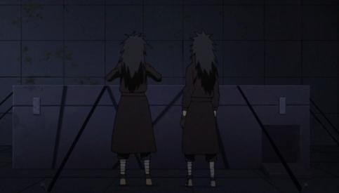 扉间与泉奈手持武士刀相互撞击,与此同时,佛间与田岛也展开对战,他们趁自己孩子对战的同时,跳向空中手持忍刀与苦无扔向双方的孩子,企图杀死对方的孩子。所幸被柱间与斑及时用石头抵挡了攻击。