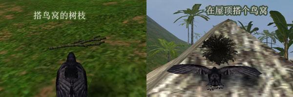 左上角的长条是饥饿值,走到能吃的食物附近就能吃掉食物。可以收集一些树枝,找个地方搭鸟窝,产蛋孵小鸟,需要将鸟窝搭建完成才能产蛋,产蛋后要在上面孵化,不然蛋会感到冷。小鸟出生后,左上雷达会出现小鸟的图案,按空格键喂小鸟。把小鸟喂大后会增加生命值。鸟粪便可以用来攻击人类和其他鸟类。左上角的五个黄色线条表示生命值,受伤五次游戏结束。生蛋的时候在巢的外面按空格键,会拉出蛋黄并消耗饥饿值。