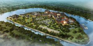 酒店位于南昌市象湖附近,临近八大山人梅湖景区,西临雄溪河及金沙大道,北、东、南面为规划道路。与南昌市旧中心区直线距离约9公里,与新市中心直线距离约11公里。酒店定位为生态休闲度假酒店,对城市呈现出开放和包容的态度,结合院落式空间布局特征,将酒店水景,雄溪河景观,以及生态公园,庭院绿化等与建筑本身融为一体。