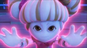 小蕾VS假小强(败北):偷袭失败,两颗花椒弹都被假小强接住扔回去,被伊巧巧所救。