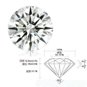 1.直径(diameter) 即钻石腰部圆形水平面的直径。其中最大值称为最大直径,最小值称为最小直径,1/2(最大直径+最小直径)值称为平均直径。单位为毫米(mm),精确至0.01。