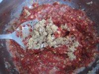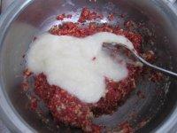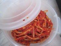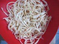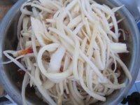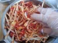 1.新鲜桔梗撕成细丝或者干桔梗浸泡好后撕成细丝,用盐水处理搓洗后挤干水分撒盐备用。 | |