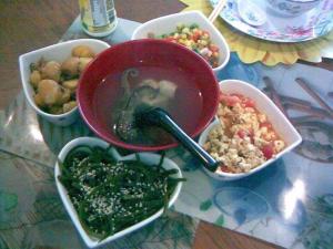 四菜一汤,四菜包围着一汤,是不是特别像麻将里的五饼?