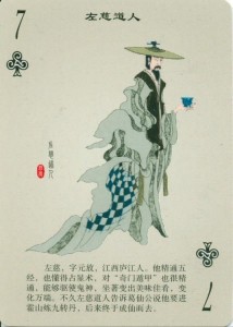 桌游《三国杀》左慈原画左慈精通五经,晓房中术,也懂得占星术,从星象中预测出汉朝的气数将尽,国运衰落,天下将要大乱,就感叹地说:“在这乱世中,官位高的更难保自身,钱财多的更容易死。所以世间的荣华富贵绝不能贪图啊!”于是左慈开始学道,对“奇门遁甲”也很精通,能够驱使鬼神,坐着变出美味佳肴。左慈在天柱山精修苦炼道术,在一个石洞中得到一部《九丹金液经》(三国演义中为《遁甲天书》),学会了使自己变化万端的方术,辟谷术,法术很多记也记不过来。