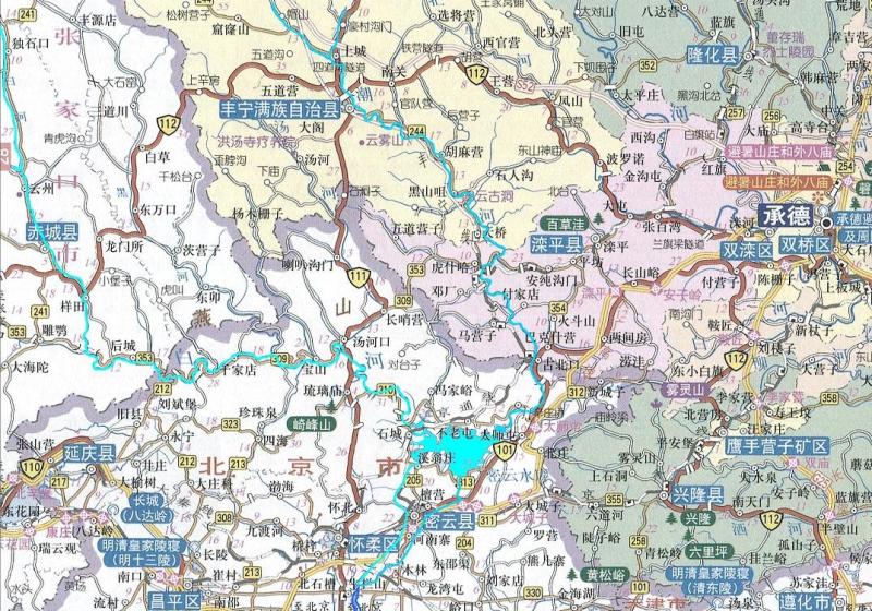 潮河,原由密云县城东南出孤山南折,经提辖庄、宁村、河南寨至两河村西南出境,到牛栏山东与白河汇流南下。现河南寨乡的小东河为潮河下游故道。