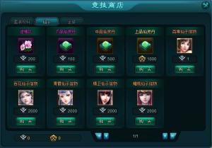 荣誉:在荣誉商店中兑换装备材料、仙子物品、坐骑物品。