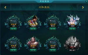 进入月光宝盒后,玩家可以看到指引箭头,指引着怪物所在的方位,玩家只要跟着箭头寻觅即可。同时在界面上会有战斗用时,用时越少,通关后的奖励越多,而且三星通关后就能使用扫荡功能来免除手动的困扰。因此玩家还是需要尽量以3星通关做为目标。此外玩家还能看到在月光宝盒中有各种BOSS镇守,击败相应BOSS后会获得神将碎片。获得一定神将碎片后可合成神将或提升同名神将的阶级。