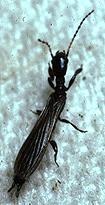 有翅亚纲的1目。中小型狭长深色昆虫。咀嚼式口器。翅两对,膜质,同形。雌无翅前足跗节膨大,内藏丝腺。作丝质隧道居树皮缝隙间。俗称足丝蚁。分布于热带、亚热带地区,在南美洲北部和非洲中部种类最多,中国已有记录共5种,如等尾足丝蚁,分布于云南、广东、福建、台湾等省,寄居在桉树、木麻黄和榕树上。