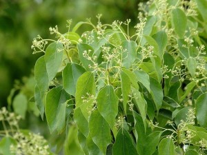 樟树叶和浆果圆锥花序腋生;花被片6,淡黄绿色,内面密生短毛;能育雄蕊9,花药4室,第3烨雄蕊花蕊外向,瓣裂;子房上位。浆果球形,紫黑色,果托杯状。花期5~6月,果期10~11月。