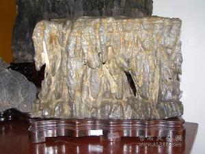 栖霞山古称摄山,位于南京城东北22公里,南朝时山中建栖霞精舍(栖霞寺),因之得名。栖霞山有三峰,主峰三茅峰又称凤翔峰,海拔286米;东峰形若卧龙,称龙山;西峰状似伏虎,称虎山。栖霞石石质有粗有细,质粗者嶙峋苍古,质细者清润亮泽;栖霞石造型有的漏、透、瘦、皱,嵯峨空灵;有的峰峦叠嶂,嶙刚峭丽;有的凌空倒挂,峰回路转;有的清润秀丽,扣之如磬。栖霞石的表层纹理,深浅有度,乳凸处清润光泽,如霞似锦,凹陷处纹理清晰,疏密有致,似行云流水,具有独特风采神韵。