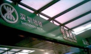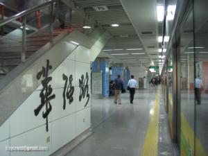 华强路站附近为新兴商业区,商业气氛浓厚,建筑装修设计体现出深圳商业的发展水平及蒸蒸日上的气氛特点。