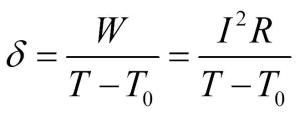 式中,W是热敏电阻消耗的功率(mW);T是热平衡时的温度(℃);T0是周围环境温度(℃);I是在温度为T时通过热敏电阻器的电流(A);R是在温度为T时热敏电阻器的电阻值(Ω)。