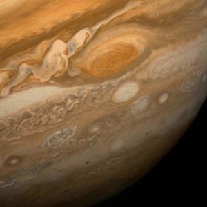 木星的大红斑位于南纬23°处,东西长4万公里,南北宽1.3万公里。探测器发现,大红斑是一团激烈上升的气流,呈深褐色。这个彩色的气旋以逆时针方向转动。在大红斑中心部分有个小颗粒,是大红斑的核,其大小约几百公里。这个核在周围的反时针漩涡运动中维持不动。大红斑的寿命很长,可维持几百年或更久。大红斑的豔丽红色令人印象深刻,颜色似乎来自红磷。