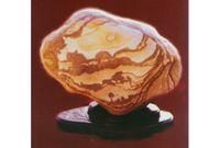 金海石是北京地区三大观赏石之一。是北京东北部山区峡谷河底中的卵石。因最早发现于平谷区金海湖而得名。该石种的原岩是十几亿年前远古代 石英岩,在15000万年前受 火山岩浆中所含铁和 锰矿液侵染、渗透而使高价铁和低价铁间隔分布,经漫长的风化而碎落江河,又经水冲磨砺形成褐黄色、暗红色、黑褐色和红紫色等色彩丰富的景观卵石。多变的颜色形成层次为红白、黄白、褐白等色彩相间交替出现的特殊纹理图案,自然界的万千变化 无限生机给金海石注入了活力。