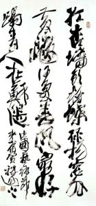 祝遂之的作品,对“势”的把握很到位。“势”是评价书法艺术的一个重要的美学范畴。唐朝书法理论家张怀瓘在《用笔十法》中说:“夫书第一用笔,第二识势,第三裹束。在这里张怀瓘明确地提出了书法创作中对“势”把握的重要性。祝遂之深刻明白其中的道理,不管是创作小幅的作品还是四尺整纸的大幅作品,对“势”的把握都很到位。行草书虽然很容易体现艺术家的才气,但是要在龙飞凤舞中,不慌乱阵脚,使书法视觉空间具有时间的运动性质,以及在沉静中寓有灵动飘逸之感,对书法创作“势”的掌握就显得尤为重要。祝遂之书法作品中的字与字之间,笔断意不断,每一个字每一笔都相互呼应,而使整幅作品气势相连。
