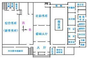 一、二楼(南配)综合书库(新书书库) 一楼社科书库,外文图书借阅室