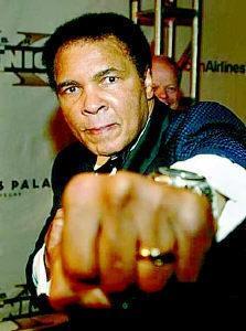 此后,阿里又连续十次蝉联拳王称号,其中就包括1975年10月,在菲律宾马尼拉战胜弗雷泽的世纪之战。