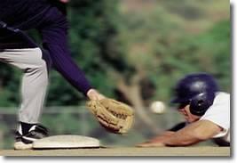 慢投垒球10.跑者冲过一垒后,若从一垒沿线内侧回垒,触杀出局有效;若从一垒沿线外侧回垒,则触杀无效,安全上垒。